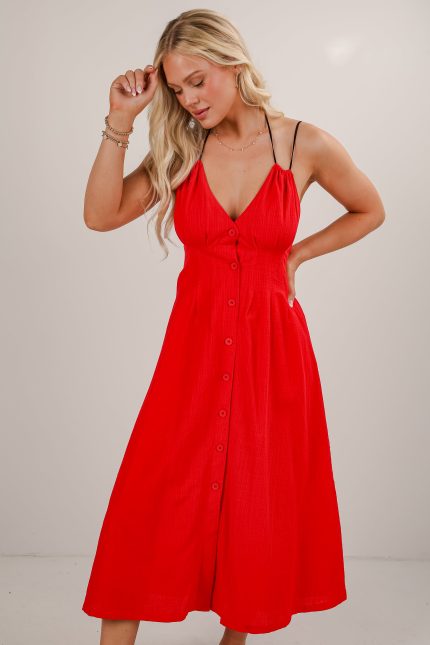 FINAL SALE - Right On Time Red Midi Dress $292.00