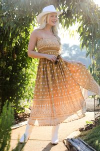 Classically cute with an elegant presence, the Saltwater Essential Strapless Smocked Midi Dress is ready to soak up some sun! Featuring a bold and breezy abstract print, this eye-catching dress is designed with a comfortable smocked upper for a secure and flattering fit. The strapless neckline adds a touch of effortless charm, while the side slits bring movement and a hint of allure to every step. Perfect for beach days, brunch dates, or summer events, this midi dress is your new must-have for warm-weather style! Available in 2 colors. Lightweight Woven Knit Fabrication Abstract Print Strapless Neckline Stretchy Smocked Upper Flowy Fit Slits on Both Sides 100% Rayon Dry Clean Only Model is 5’6″ and wearing a Small.Garment Measurements in Inches:Small | Bust 24” (Stretches up to 30″) | Waist 22” (Stretches up to 28″) | Hips 40” | Length 42”Medium | Bust 26″ (Stretches up to 32″) | Waist 24” (Stretches up to 30″) | Hips 42” | Length 42.5”Large | Bust 28” (Stretches up to 34″) | Waist 26” (Stretches up to 32″) | Hips 44” | Length 43”